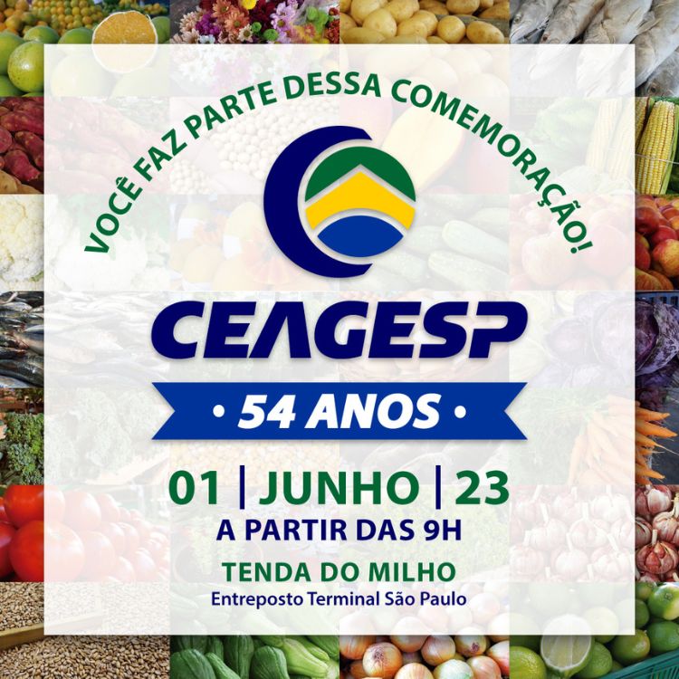 Em comemoração a seus 54 anos de fundação, a Companhia de Entrepostos e Armazéns Gerais de São Paulo (CEAGESP) faz um convite aos comerciantes que operam em suas dependências para a festa. Dessa vez, a comemoração será em 1º de junho, uma quinta-feira, na Tenda do Milho, no Entreposto Terminal São Paulo (ETSP), das 9 às 19 horas. Contamos com sua presença!