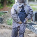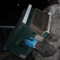 REMOÇÃO – A retirada do enxame ocorreu somente no dia seguinte, sexta-feira, por volta das 5 horas. Vestido novamente de maneira correta para a ocasião, Luciano Legaspe conferiu se os insetos estavam dentro da caixa de captura. Uma vez feita a verificação, fechou o caixote e o carregou até o carro. Após retirar a roupa de apicultor, partiu imediatamente rumo à sua propriedade rural, que é cadastrada junto ao Ministério da Agricultura, Pecuária e Abastecimento, para soltura das abelhas. “Faço isso para que elas não sejam mortas”, explica.