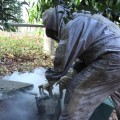 Devidamente equipado, o que inclui cuidado especial com a vestimenta, o geógrafo Luciano Legaspe, que tem mestrado na área ambiental, é um dos poucos funcionários da CEAGESP capacitados a esse tipo de missão, que costuma causar certo pânico nas pessoas.