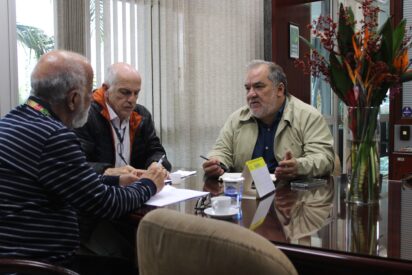 Nessa segunda-feira, 12/05, o diretor-presidente José Lourenço Pechtoll, acompanhado de Carmo Robilotta Zeitune, assessor técnico da Diretoria Técnica e Operacional (DIOPE), receberam Altivo Cunha Almeida, técnico especializado em abastecimento alimentar da Organização das Nações Unidas para Agricultura e Alimentação (FAO) no Brasil. A reunião teve o intuito de iniciar o planejamento do seminário sobre as perspectivas futuras para o Entreposto Terminal São Paulo (ETSP), que trazem o intuito de melhorar a infraestrutura e a logística da maior central de abastecimento da América do Sul.