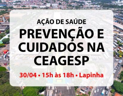 A CEAGESP recebe nesta quarta-feira, 30/04, das 15h00 às 18h00, a ação “Saúde sem risco: Prevenção e Cuidados na CEAGESP”, promovida pelo Serviço de Atendimento Especializado “Paulo César Bonfim” (SAE Lapa) em parceria da Secretaria Municipal de Saúde com o Departamento de Entreposto da Capital (DEPEC). A iniciativa será realizada em frente ao Pavilhão MLP, na Lapinha.