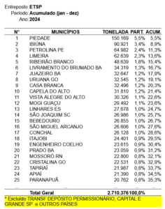 Entre os 1.482 municípios, os 25 que mais enviaram seguem abaixo: