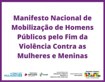 A Companhia Nacional de Abastecimento (Conab), junto com o Ministério das Mulheres, a ONU Mulheres no Brasil e o movimento HeForShe (Eles por Elas) realizará em Brasília (DF) um evento no Auditório do Palácio do Planalto, a partir das 16 horas desta quarta-feira, 18/12, sobre o Manifesto Nacional de Mobilização de Homens Públicos pelo Fim da Violência Contra as Mulheres e Meninas — assista aqui.