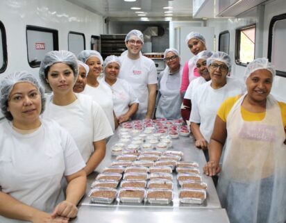 “Na aula teórica conhecemos a respeito do manuseio dos alimentos e, na aula prática, pudemos colocar a mão na massa. Pude conhecer várias técnicas que eu não conhecia” comenta Geysa Fernandes, empreendedora e uma das beneficiadas pela Nossa Turma “A importância é levar esse conhecimento e colocar em prática na minha empresa”, completa.