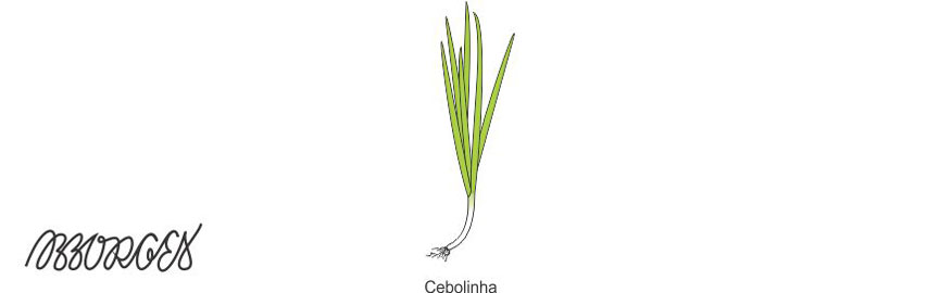| Cebolinha | Allium fistulosum | Bulbos brancos e alongados e suas folhas são verdes com 20-40 cm, compridas e cilíndricas, como tubos ocos. |