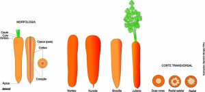 | Nantes | Alaranjado-escura | Cilíndrico | Arredondado | Pouco evidente | Lisa |