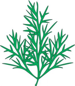 | endro ou dill | Anethum graveolens | folhas finamente divididas, pinadas em segmentos filiformes, com coloração verde-azulada |
