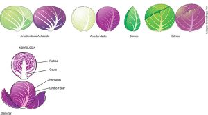 | Tipo de cabeça | Coloração das folhas | Textura das folhas | Embalagem e peso mais comum |