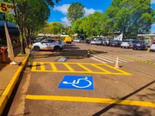 Foram realizadas demarcações de vagas, placas e outras sinalizações no local