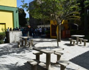 Novo espaço com bancos e mesas fica ao lado da Torre do Relógio, no Entreposto Terminal São Paulo; caminhada passou ainda por pavilhões das frutas