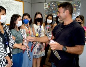 Profissionais da capital receberam flores do diretor-presidente, coronel Mello Araujo; mensagem foi enviada às mulheres que atuam no interior