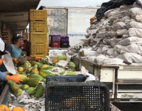 Ao lado de chefe do Centro de Qualidade Hortigranjeira, coronel Mello Araujo orienta permissionários a evitarem transporte a granel