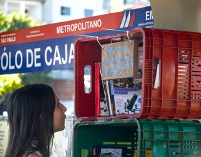 Caixas doadas foram usadas para serem montadas como bibliotecas em 12 pontos de ônibus da região do Cajamar